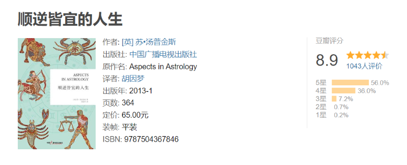 苏·汤普金斯的《顺逆皆宜的人生》令人赞叹!苏是一名倍受爱戴的老师,并且任教多年。苏以自己的冷幽默、抽丝剥茧的研究天分和占星直觉而闻名。她是一名执业占星师,也是一名顺势疗法医师,是心灵和身体的敏锐诊断专家。