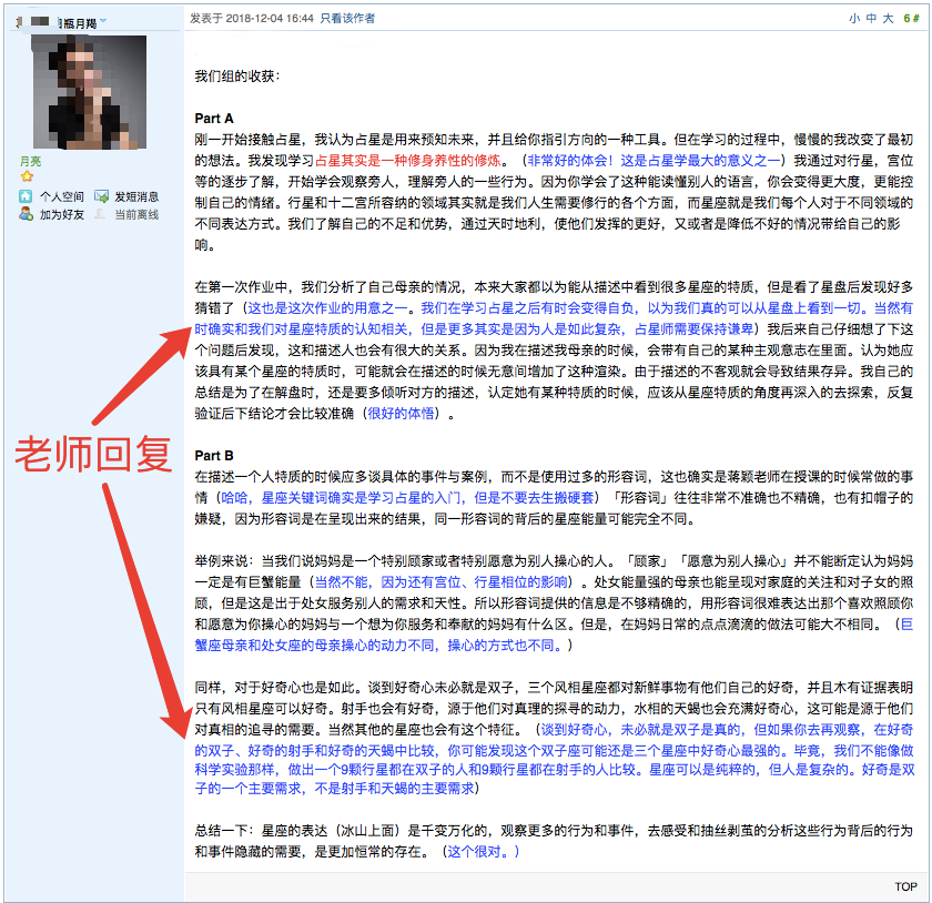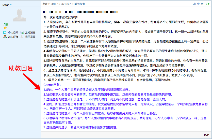 学好占星学不仅仅需要延请一、两个老师,而是需要对教学难点有充分了解,且有持续的教学跟进服务。若道在7年的多次核心课程教学中,有多年国外老师和中国老师、助教的配合、课程顾问配合教学的经验,对于教学知识点和中国学生的疑问有很多积累。仅在若道论坛,就有近千个学生问题的答疑解惑和作业的批改。