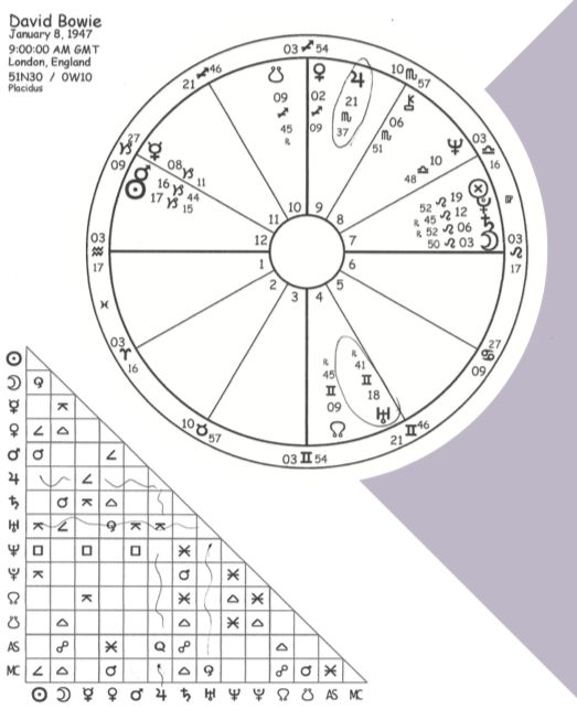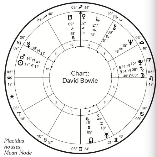 天王星是大卫·鲍伊水瓶座上升的守护星,这是不是很有趣?他需要与众不同,而不是把“规范”作为他生活目标的一部分。他需要成为潮流的引领者。鲍伊的“空相木星”掌管着他的中天,这帮助他通过放大他的事业和公众能量来为他赢得名声。他的空相木星落在第九宫,在他获得国际认可方面起到了重要作用。