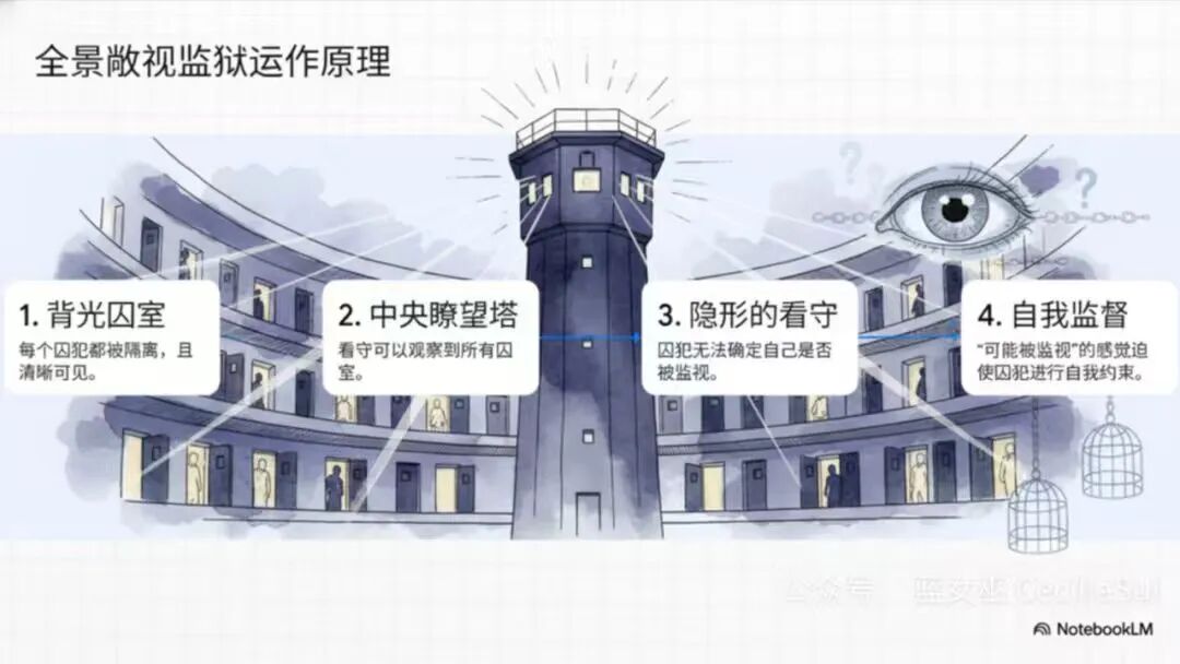极端父权社会的摩天大楼,像巨大的墓碑插向天空。它亮着灯,高高在上,俯视着地上的蚂蚁。这位土星超我,不仅是严厉的审判者,甚至带有神话中“克洛诺斯吞噬子女”的恐怖色彩?他不保护子民,而只是“审视”他们:若你不能攀登高峰,你就没有资格在山脚下苟活。不进则退。爬不上去,就摔下来吧。并没有温情的网接住你,只有水泥地……“斩杀线”最恐怖就在于,它剥夺了巨蟹最在乎的保护机制;相反是理性地自动触发一系列的惩罚机制。冷血的社会机器,以精密的齿轮,坚硬的规则,将一个活生生的人,从云端直接绞杀至泥潭。却让每一步都合乎契约,无可厚非,所谓“程序的正义”?——此处,我竟一下子联想到了福柯《规训与惩罚》中的圆形监狱,秒懂!