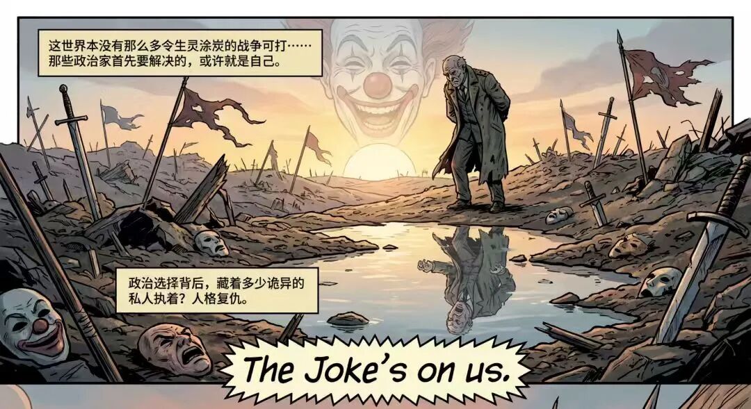 历史会不断让一切宏大理想破产,岁月终将磨灭你心中的为何而战。人生注定的废墟里,那唯一真实的胜利,或许只是去改写一些关系?在“宏大失败”里,去守住具体的人。“再战”?其实都是内战……多年后再举起枪,枪口指向的是自己的影子。毕竟,真正的战斗,只事关你自己心里的输赢。这世界本没有那么多令生灵涂炭的战争可打……那些政治家首先要解决的,或许就是自己。政治选择背后,藏着多少诡异的私人执着?人格复仇。The Joke’s on us.