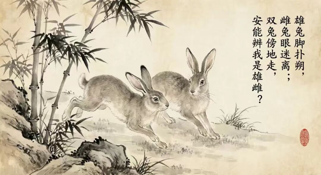 “雄兔脚扑朔,雌兔眼迷离;双兔傍地走,安能辨我是雄雌?”……