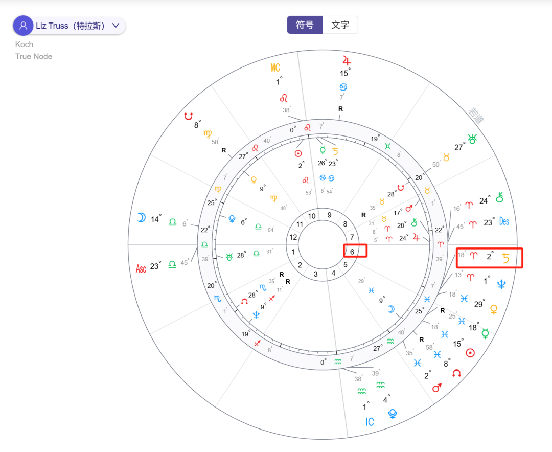 如下图中,土星白羊座在特拉斯星图的第6宫。