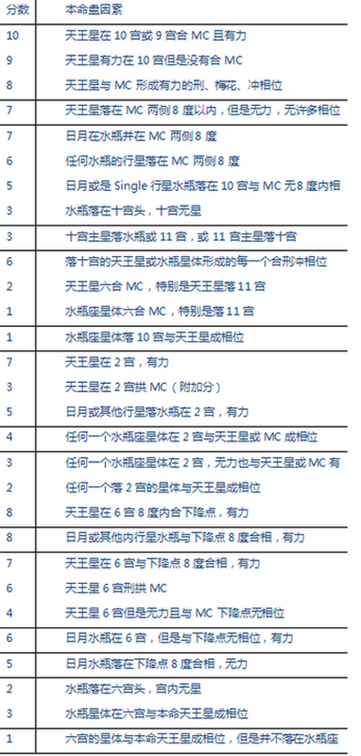 **** 天王星对职业影响强度表****