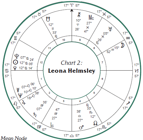 许多年以后,在1989年,她因逃税被判处四年监禁,未付税款达170万美元。但在过去的15年里,赫尔姆斯利已经支付了近五亿美元的税额。利昂娜演绎了一个灰姑娘的故事,但没有收获美好结局。行进海王星对分她的太阳和冥王星,削弱了她的权力基础。她糟糕的声誉成为小报攻击的目标,并被选为过度追寻美国梦的象征,随着过度追梦的十年渐近尾声,7月4日出生的赫尔姆斯利成了一个替罪羊(双鱼座中天),受到惩罚,以儆效尤。