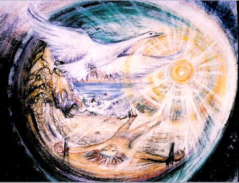 通过斯坦的工作,我们开始看到和理解人类体验中的一个更大的原型模式—— 一个深奥的、基本的模型,包含并表现在出生本身的普遍体验中:那个强大的辩证序列,从最初与子宫连为一体的未分化状态,转变为一种问题渐增的状况,包含了收缩、冲突、矛盾,伴随着分离、二元性和疏远的感觉;最终的高潮就是自我死亡、毁灭的痛苦黑暗,随之而来的是一次意外的救赎解放,既克服又满足了中间的疏离状态,带来启发性的灵性重生,产生了一个更伟大、深刻的自我同一和一个万物有灵的宇宙和神性。
