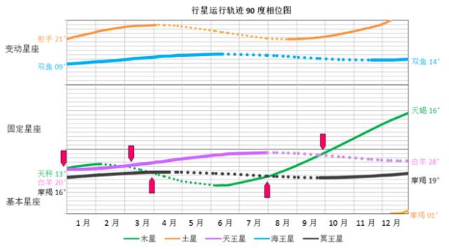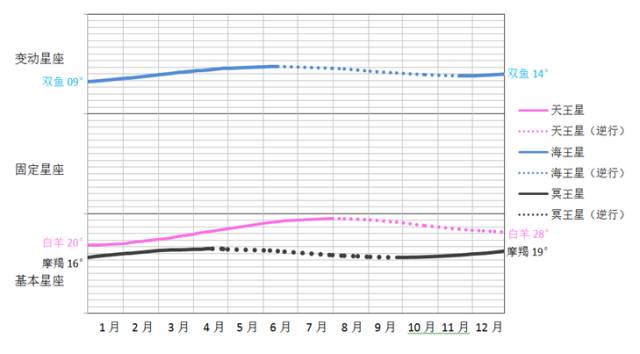 ③天王星 整体运行区间在白羊座20°33′-28°32′