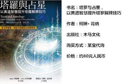 在本书中作者介绍了塔罗的构成要素,以及详细介绍了塔罗牌系统,占星学体系与卡巴拉系统之间的关联。并且运用占星学的体系设计的塔罗牌阵也非常精妙。所以无论你是一名占星师,想要学习塔罗牌,还是你是一名塔罗师,想要学习占星学,再或者你上手就想将占星学与塔罗两者进行有效结合,那就赶紧入手这本书吧。