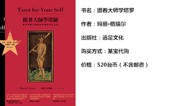 此书为当代塔罗大师玛莉(Mary K,Greer)的成名之作。本书的英文名是《Tarot for Your Self》,可以看出这是本如何通过塔罗来帮助自己成长的入门书,如果你能跟着这本书一步一步练习(每个章节后面都有探索性的觉察练习),相信看完这本书后,你不光对塔罗解读运用自如,同时会发现对自己和人生有更进一步的了解和体会。如果你是初学者,建议先看书中附录一“牌意解读”或者塔罗入门书《其实你已经很塔罗了》,任何对塔罗有兴趣的人,只要你做完本书中的练习,一定会有收获的。