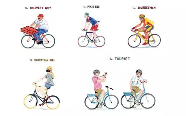 这组插画选自美国艺术家马克罗伯特的作品,他用画笔生动地记录了纽约街头形形色色的骑行者——快递小哥、上班族、游客、单车爱好者、周末伴侣、曼哈顿的时尚女生等等。