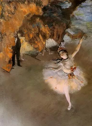 德加是印象派中以传统精准素描和印象派色彩风格绝妙结合的画家,并以画芭蕾舞女而著称。他一生创作了大量该主题的作品,精细刻画了各种场景下的芭蕾舞女,把她们在舞台前后的各种动作和姿态用画笔定格。