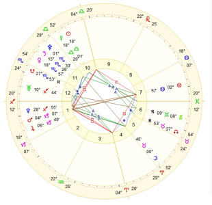 张靓颖出生星图,因具体时辰不详,忽略四轴、宫位以及月亮度数。
